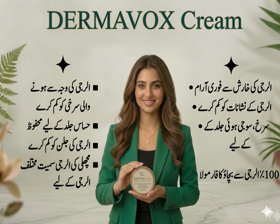 "Relieve skin discomfort instantly with DermaVox Multi-Purpose Allergy Cream. Specially formulated to soothe itching, redness, and inflammation, it provides fast-acting relief for eczema, psoriasis, and sensitive skin rashes. This non-greasy, dermatology-tested formula repairs the skin barrier and restores healthy texture. Safe for all skin types, it’s your ultimate solution for calm, irritation-free, and protected skin every day."